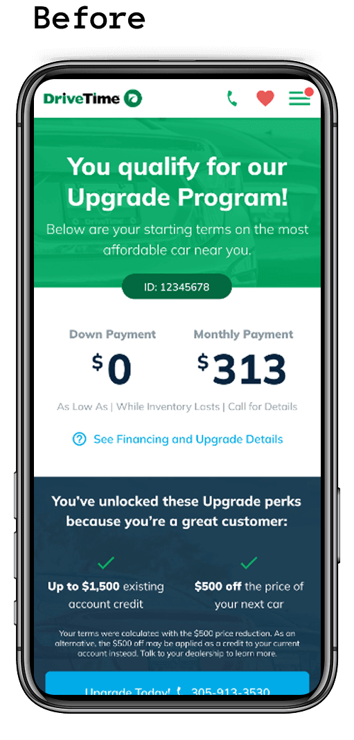 Reinforce the idea that Upgrade customers are getting a special deal—tailor language to emphasize exclusivity.Verbiage Consistency